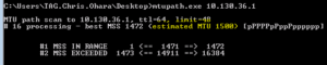 You will see I receive a ping response with 1470 – then slightly increasing to 1472 gives me my limit before packets are fragmented.