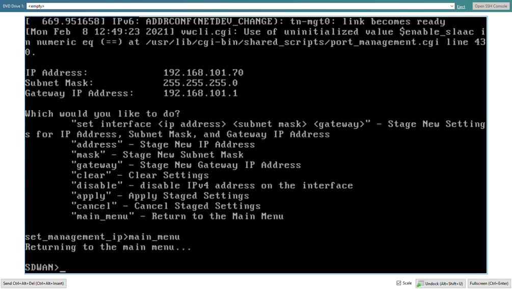 Note: the gateway is reachable from the LAN interface of the SDWAN appliance.