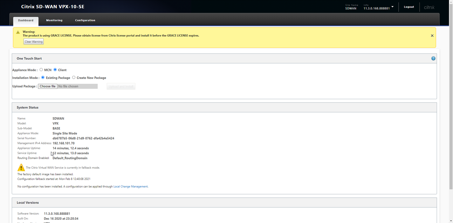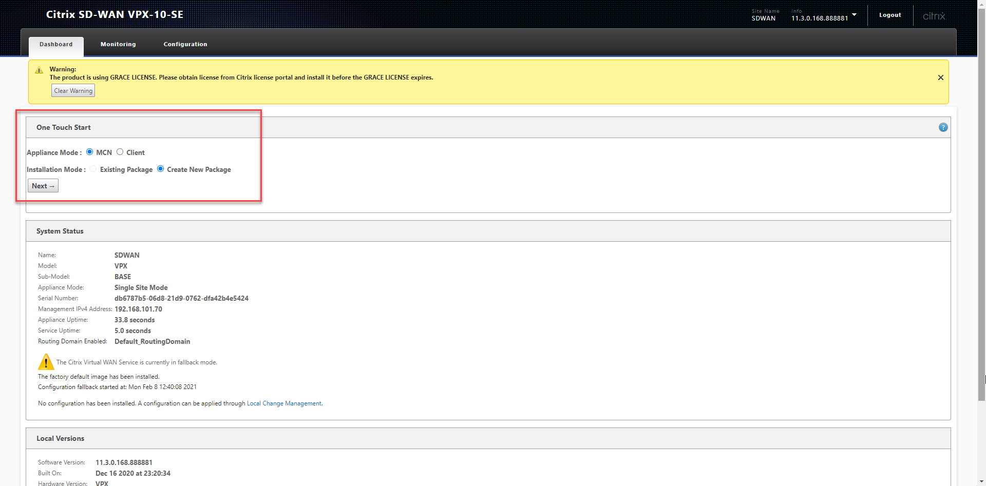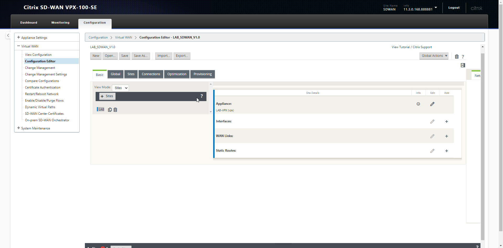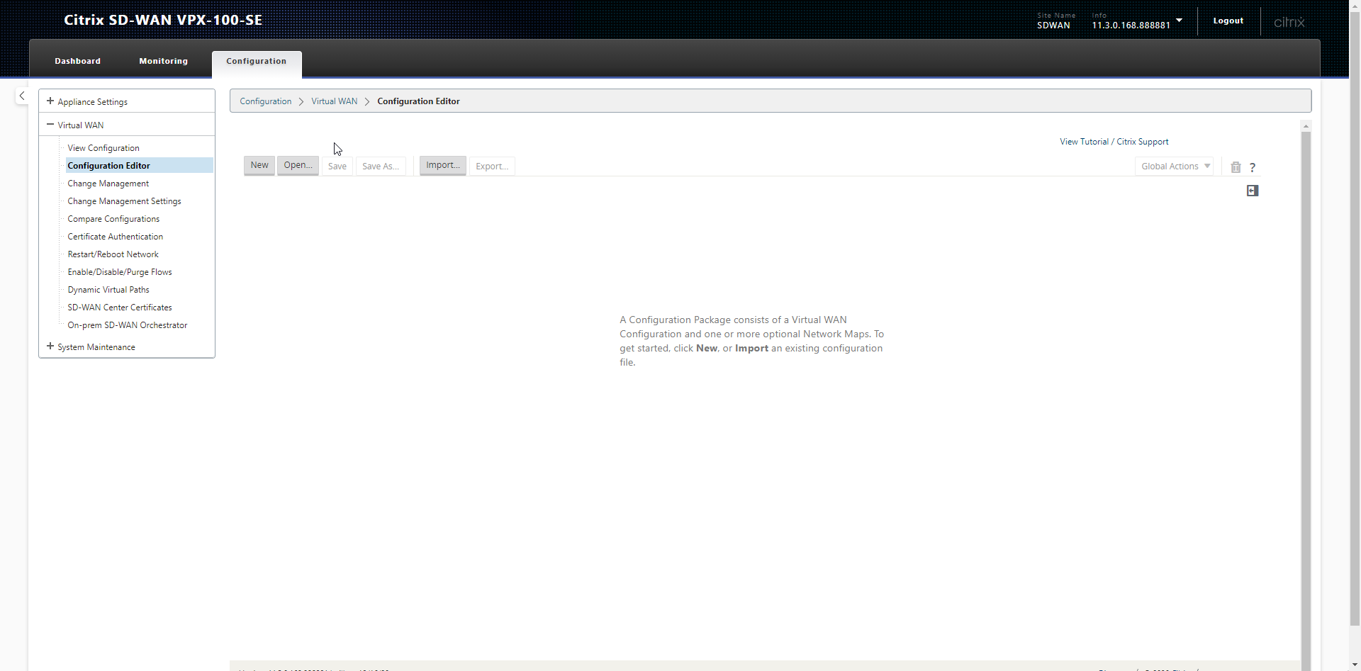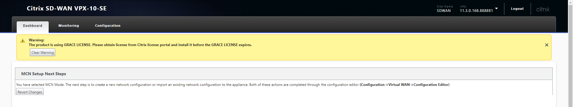 What we’re doing here is setting up the MCN (Master Control Node) for SD-WAN. Your first step whenever you are deploying a Citrix SD-WAN solution. This node will become your configuration editor; these configurations get installed on each remote SD-WAN appliance.