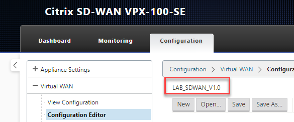 We’ll now proceed to create a new configuration. Select “Virtual WAN” from the left hand menu and “Configuration Editor”.