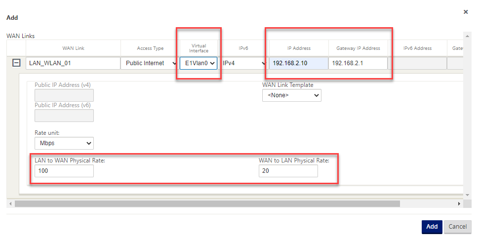 Select the “+” symbol on the right-hand side section labelled “WAN Links”.