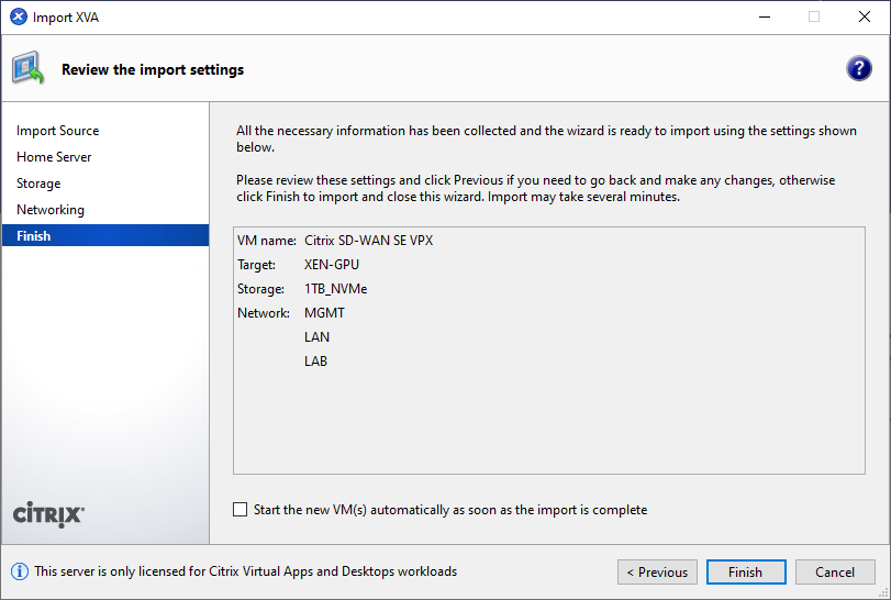 Let’s get started on importing the appliance and starting to get it configured. I’m using XenServer to host my SDWAN appliance.